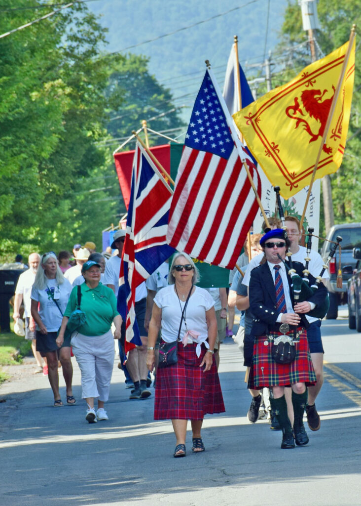 Since that time, the Roxbury congregation has graciously extended use of the church and its grounds to the JMA during its quinquennial reunions. It serves as the starting point for the parade to the Roxbury Cemetery and hosts the closing activity of each five-year family reunion. The reunion ends with a church service for all Mores complete with bagpipes and banners for each line representing John and Betty’s eight children.
